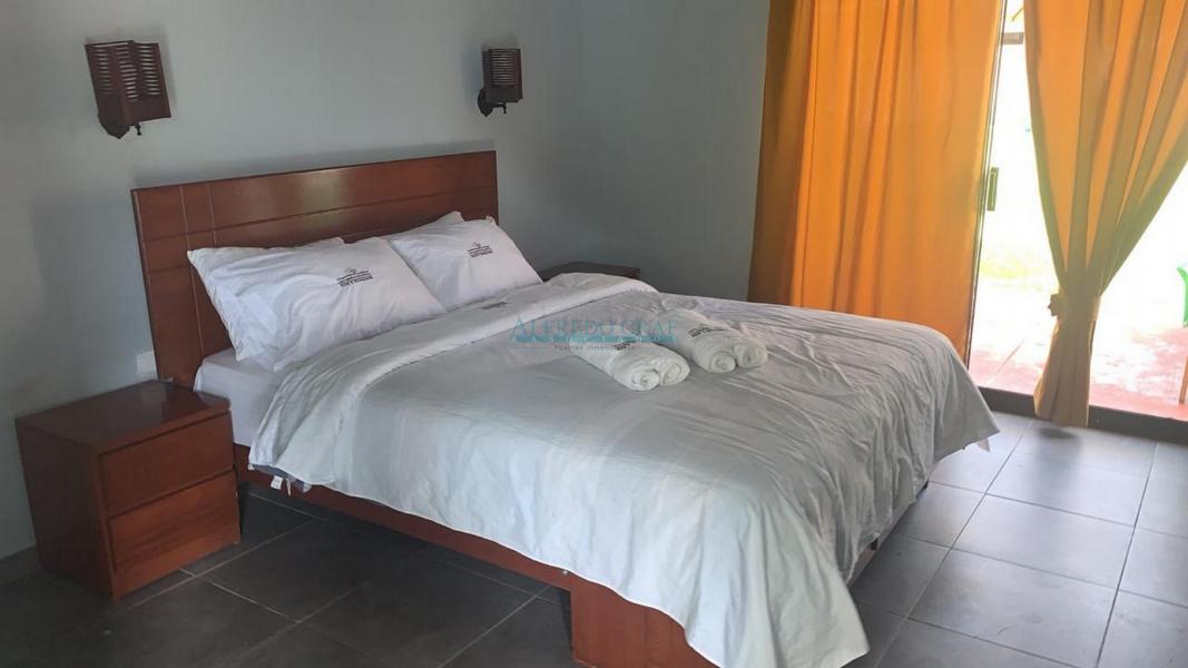 Cuenta con 18 acogedoras cabañas tipo bungalow, casa principal, comedor y cocina, piscina, jardines y amplias áreas verdes.