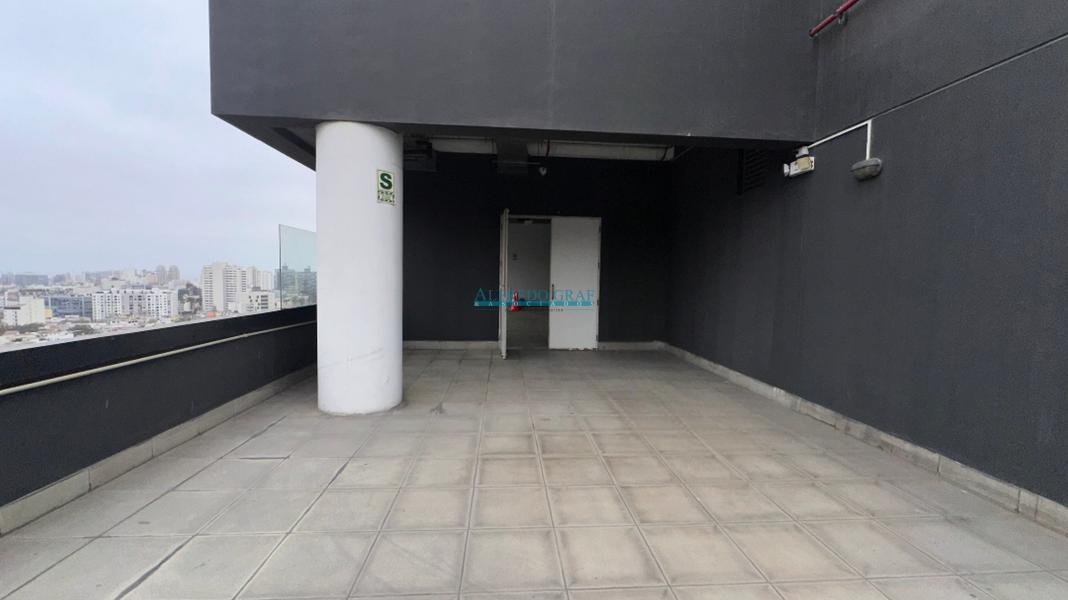 1 solo ambiente de 134.05m² con hermosa vista al parque, además cuenta con un amplia terraza de 113.86m² que se alquila en US$8xm², 1 baño.