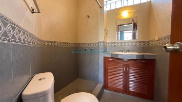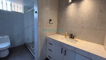 El primer piso incluye sala-comedor, bar, cocina, dormitorio, cuarto de lavado, baño de servicio, cochera y patio. El segundo piso ofrece cuatro dormitorios, dos baños y balcón. El tercer nivel cuenta con lavandería, sala, cocina, dormitorio y dos baños adicionales.