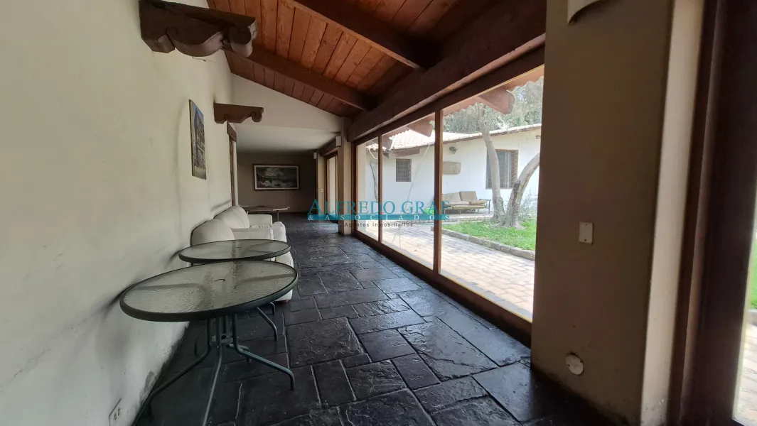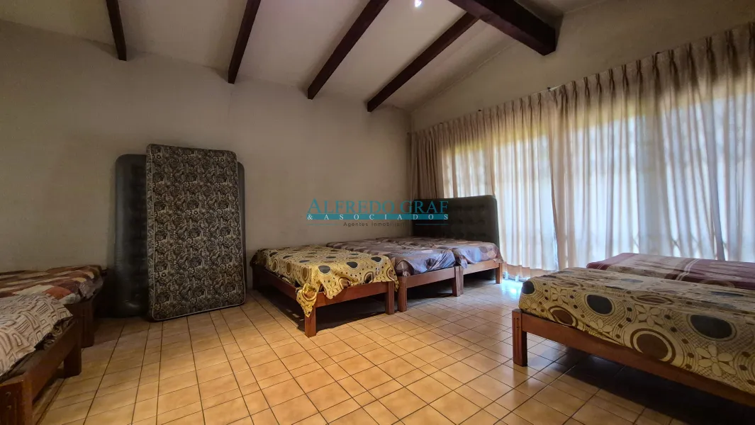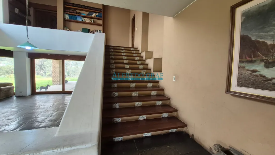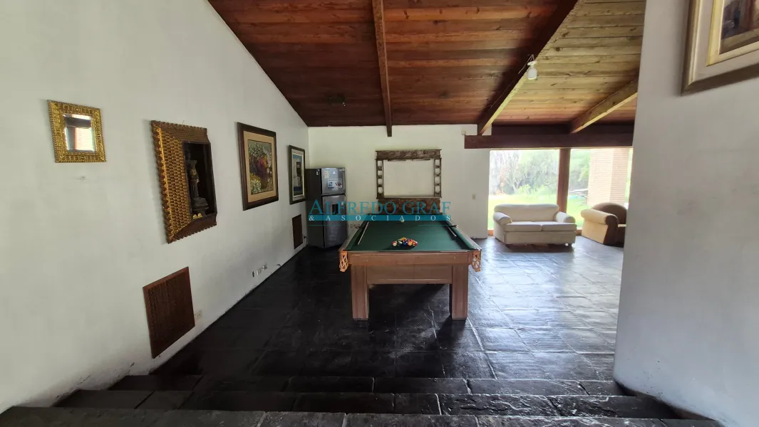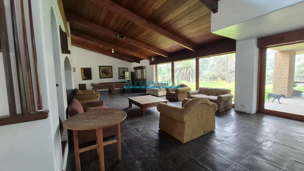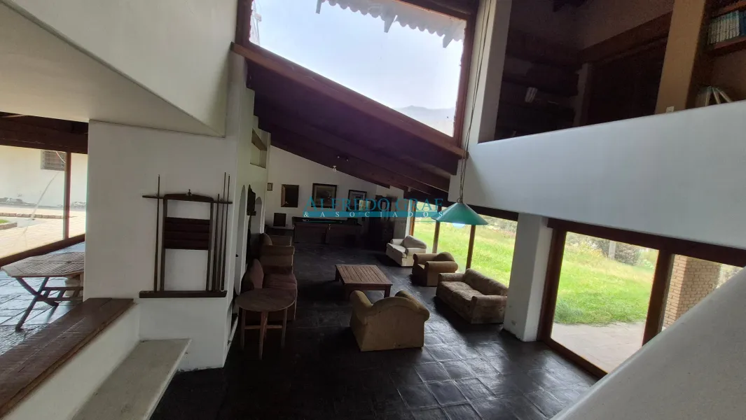 La propiedad cuenta con una casa principal de dos niveles, que ofrece amplios ambientes sociales con sala y chimenea, comedor, cocina equipada y dormitorios con baño. El dormitorio principal se encuentra en el segundo nivel, brindando mayor privacidad.