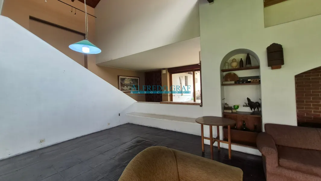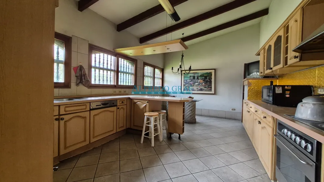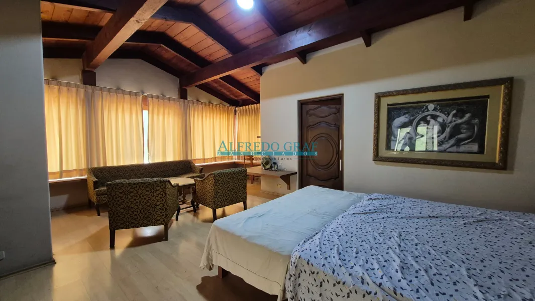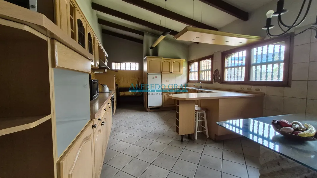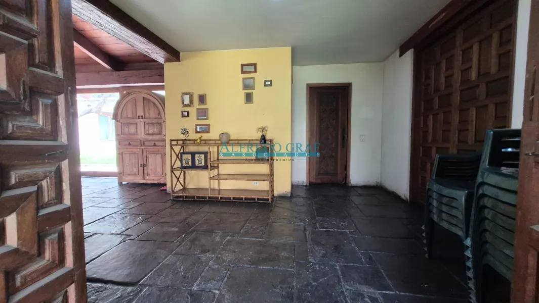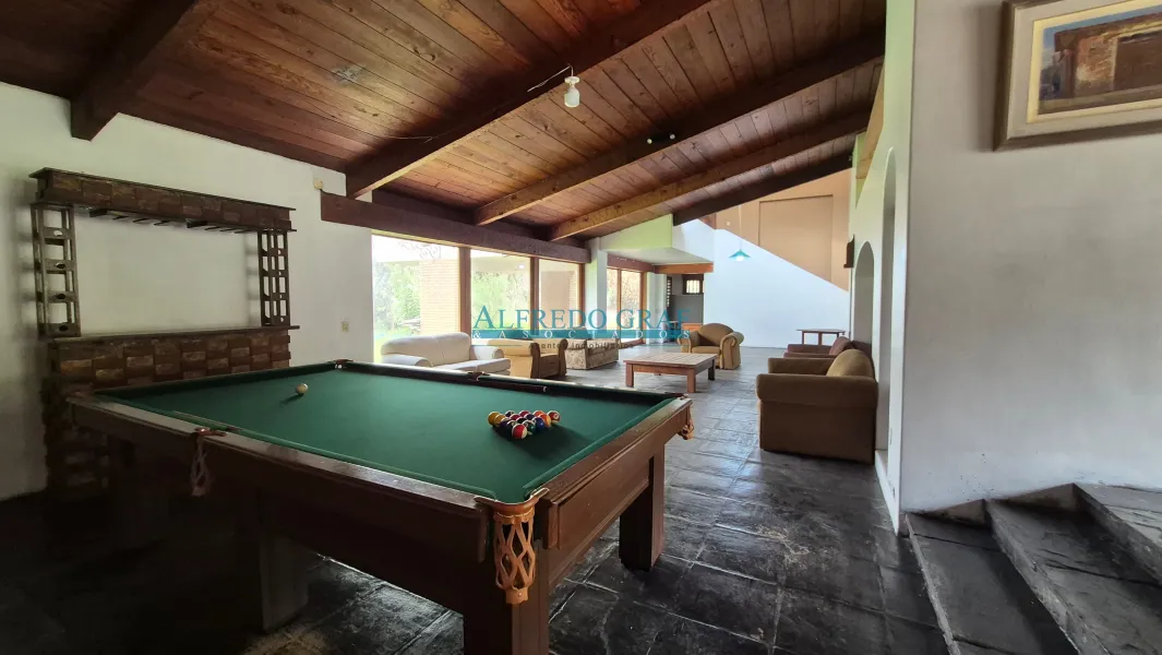 La propiedad cuenta con una casa principal de dos niveles, que ofrece amplios ambientes sociales con sala y chimenea, comedor, cocina equipada y dormitorios con baño. El dormitorio principal se encuentra en el segundo nivel, brindando mayor privacidad.