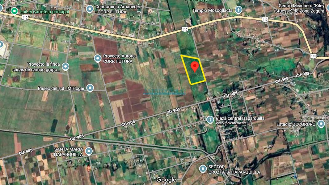 Terreno agrícola totalmente plano ubicado a 30 minutos de la ciudad del Cusco. Cuenta con 4.1160 ha (41 160 m²), 163 m de frontis hacia la vía