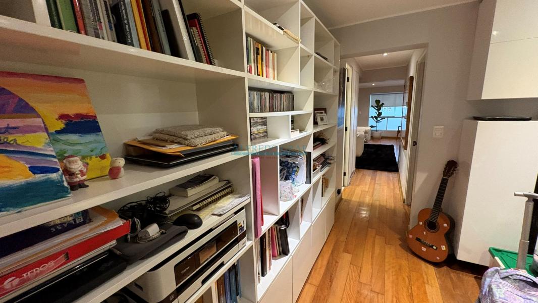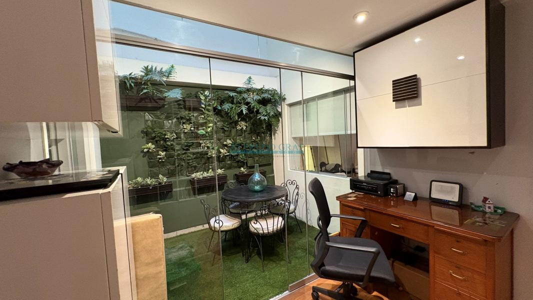 Cuenta con 2 dormitorios, 2 baños completos, sala-comedor, kitchenette, sala de estar o espacio de trabajo y 2 patios interiores que aportan ventilación e iluminación natural.