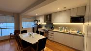 El kitchenette está equipado con muebles altos y bajos de gran capacidad, además de un mueble de lavandería muy práctico.